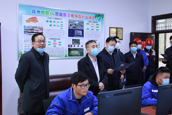 3月17日下午,中國(guó)建材股份有限公司黨委委員、副總裁、中材礦山建設(shè)有限公司董事長(zhǎng)張金棟一行蒞臨滁州中聯(lián)黃槽坊礦山視察指導(dǎo)工作,滁州中聯(lián)水泥有限公司黨委書(shū)記、總經(jīng)理劉曉俊率黨委成員、兗州中材建設(shè)有限公司副總經(jīng)理顏景祥及相關(guān)領(lǐng)導(dǎo)全程陪同。  張總一行領(lǐng)導(dǎo)深入礦山現(xiàn)場(chǎng),聽(tīng)取了關(guān)于綠色礦山建設(shè)的相關(guān)匯報(bào),實(shí)地檢查了礦山開(kāi)采作業(yè)、車(chē)輛運(yùn)輸、安全設(shè)備運(yùn)行等相關(guān)情況。劉總向張總匯報(bào)了礦山開(kāi)采近期規(guī)劃,并展望礦山未來(lái)發(fā)展。  隨后,張總一行參觀了5G智能控制室,聽(tīng)取了關(guān)于5G智能數(shù)字化綠色礦山建設(shè)情況的相關(guān)匯報(bào)。  本次張總一行領(lǐng)導(dǎo)蒞臨黃槽坊礦山視察指導(dǎo),既肯定了現(xiàn)階段礦山建設(shè)取得的成績(jī),又指明了礦山下階段的發(fā)展方向。