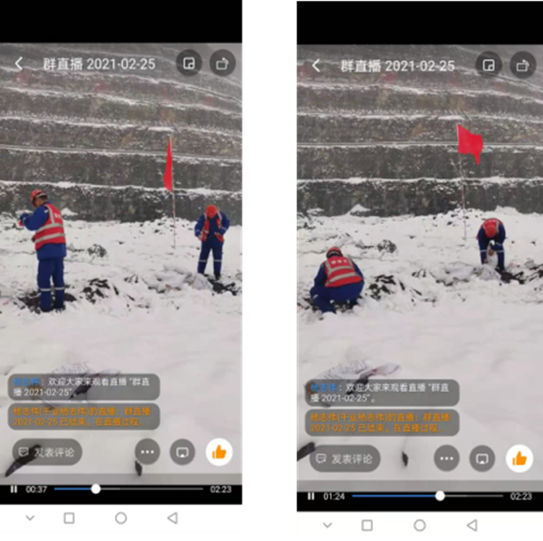 25日早,雪已經(jīng)停了,并且氣溫徘徊在零度之上,雖然冷,但道路沒有結(jié)冰,炸藥運輸車也安全準時的送達到了現(xiàn)場。為了順利開展爆破作業(yè),馬村分公司的同志們在劉黨經(jīng)理的帶領(lǐng)下,吃過早飯后就立即組織進入礦山,開展工作。爆破工作嚴格按照規(guī)定及河南省公安廳的要求下進行,全部流程都進行釘釘直播,留存錄像。