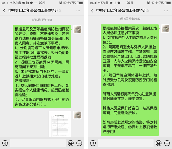 根據(jù)疫情發(fā)展及疫情期間的工作安排,遵照國家各部門、業(yè)主及公司的相關(guān)要求,分公司安排重要崗位員工返回工地,采取嚴(yán)格的防控措施,對返回人員進行不少于14天的隔離觀察。