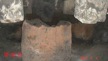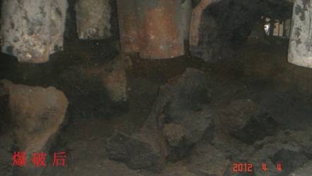 兗州中材建設(shè)有限公司云維項目部 實(shí)施石墨電極分解爆破 4月4日,應(yīng)云維乙炔化工有限公司(業(yè)主)要求,我項目部對其廠區(qū)1#電石爐內(nèi)石墨電極成功實(shí)施分解爆破。 本次爆破點(diǎn)位于業(yè)主電石車間二層電石爐內(nèi),技術(shù)人員和安全員經(jīng)現(xiàn)場勘查發(fā)現(xiàn):石墨電極為直徑1.2m、高約1.5m的圓柱狀石墨體,從中心呈輻射狀均勻分布12塊約1cm厚鋼板。三個電極呈“品”字狀分布在一個直徑約7~8米的幾乎密閉的鋼制反應(yīng)爐內(nèi)(有洞口)。爆前充分勘察了爆區(qū)周圍的實(shí)際情況,結(jié)合從網(wǎng)絡(luò)上搜集的對石墨電極的性能分析和以往的爆破經(jīng)驗,選用合適的爆破器材,擬定了幾種爆破方案。充分分析爆破方案的可行性后,選擇其中可行性較高的兩種方案進(jìn)行了試爆,結(jié)合兩次試爆效果,經(jīng)調(diào)整爆破參數(shù)后,最終成功拆除。 本次爆破對僅隔約10米遠(yuǎn)、正在生產(chǎn)的2#爐和庫房未產(chǎn)生任何影響。 這次爆破工作雖小,但我們本著謹(jǐn)慎、科學(xué)的態(tài)度對待。從爆破參數(shù)的選擇到安全警戒都認(rèn)真小心,取得了預(yù)想的效果。 通過這次爆破,積累了對巖石以外材料的爆破經(jīng)驗,也增加了我項目部尤其是年輕人工作技能。也到了業(yè)主的認(rèn)可。 孟永旺