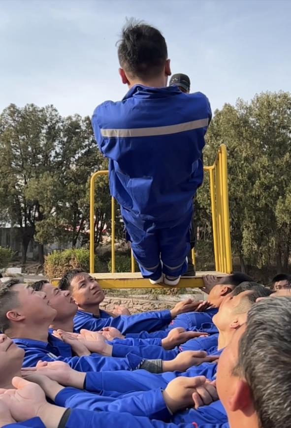 最后一個拓展項目“畢業(yè)墻”,墻高4.2米,要求在沒有任何工具的情況下翻過這面墻,剛開始每個人心里都微微一驚。最后,在教官的帶領下,員工們克服恐懼心理,團結協作,眾志成城,全部翻過了畢業(yè)墻,他們揮舞著旗幟,高聲吶喊“我們勝利了”!兗州中材公司就是這樣一個充滿激情的團隊,員工們翻過了拓展訓練營的畢業(yè)墻,相信在工作中也一定能夠翻過他們心中的“畢業(yè)墻”。
