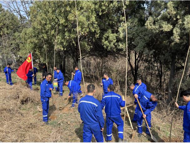 臨近3.12植樹節(jié),為響應中材礦山“黨旗紅,礦山綠”的主題植樹活動,本次團建活動特意加入了植樹環(huán)節(jié)。大家有的鏟土挖坑、有的培土植樹,有的澆水灌溉,個個爭先恐后,干得熱火朝天。