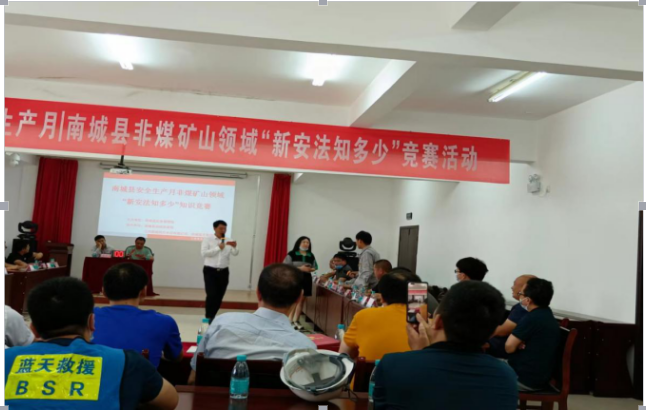 今年6月是全國第21個安全生產(chǎn)月,安全生產(chǎn)月的主題是“遵守安全生產(chǎn)法,當(dāng)好第一責(zé)任人”,今天也是全國安全宣傳日,南城縣安全生產(chǎn)委員會礦山安全專業(yè)委員會決定在江西南城南方水泥有限公司舉辦南城縣非煤礦山“新安法,知多少”知識競賽活動。 參賽隊(duì)伍:(1號隊(duì))南城縣新泰石材廠、(2號隊(duì))南城縣南景東風(fēng)礦業(yè)有限公司、(3號隊(duì))南城縣富耀瓷土有限公司、(4號隊(duì))南城縣青玉礦業(yè)有限公司、(5號隊(duì))江西煜晟礦業(yè)有限公司、(6號隊(duì))兗州中材建設(shè)有限公司南城分公司、(7號隊(duì))江西昌和礦業(yè)有限公司。