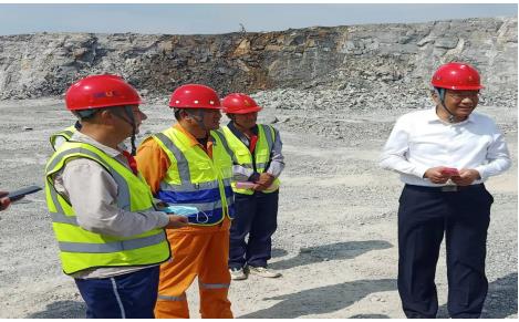 喜迎"國慶"暨“二十大”棗莊市委常委、常務副市長一行蒞臨兗州中材棗莊申豐工程處蟒山水泥用灰?guī)r礦檢查指導工作