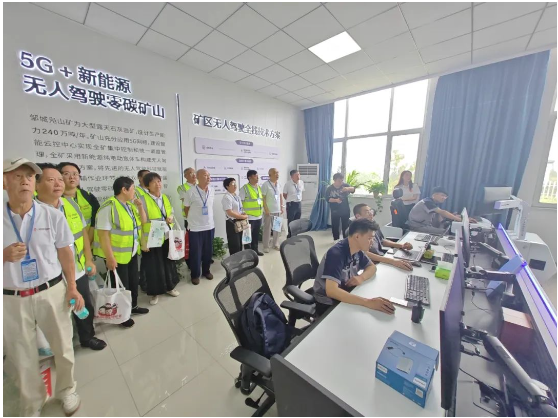 啟動(dòng)儀式后,全體人員走進(jìn)兗州中材鄒城分公司,親身感受兗州中材近年來的發(fā)展變化。在講解員的帶領(lǐng)下,全體人員依次參觀辦公樓無人駕駛云控中心、骨料生產(chǎn)線中控室、礦山180觀景平臺(tái)觀摩無人駕駛運(yùn)輸,近距離了解兗州中材在生態(tài)環(huán)保、綠色發(fā)展、礦山開采、智能制造等方面取得的成績。