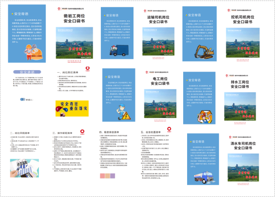 口袋書(shū)封面背頁(yè)以安全為主題,與生產(chǎn)相結(jié)合,內(nèi)容包括安全文化標(biāo)語(yǔ)、口號(hào)、個(gè)人安全承諾、具體崗位職責(zé)要求、風(fēng)險(xiǎn)辨識(shí)、操作規(guī)范、隱患排查、應(yīng)急處置等。