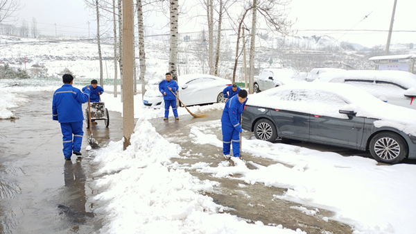 雪天寒冷,也抵擋不住全體職工對生活和工作散發(fā)的熱情和溫暖,“鏟雪官”們在白坪分公司成為一道亮麗的風(fēng)景線。