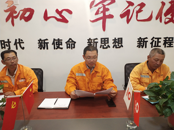按上級黨委統(tǒng)一部署,寧陽項目部于9月23日晚召開全體員工結(jié)合中材礦山劉書記講話精神,開展“不忘初心,牢記使命”主題教育活動。 會上,劉經(jīng)理首先帶領(lǐng)全體員工認真學(xué)習(xí)《在中材礦山建設(shè)有限公司開展“不忘初心,牢記使命”主題教育部署會上的講話》。全體員工分別針對“不忘初心,牢記使命”主題教育活動展開發(fā)言討論。最后,根據(jù)《在中材礦山建設(shè)有限公司開展“不忘初心,牢記使命”主題教育部署會上的講話》會議精神,劉經(jīng)理呼吁全體員工要積極努力地向黨靠攏,今后更加緊密團結(jié)在以習(xí)近平同志為核心的黨中央周圍,高舉習(xí)近平新時代中國特色社會主義思想偉大旗幟,扎實做好“不忘初心,牢記使命”主題教育工作,為全面完成集團和股份公司下達的各項經(jīng)濟指標(biāo)而努力奮斗,以優(yōu)異的成績迎接新中國成立70周年   |