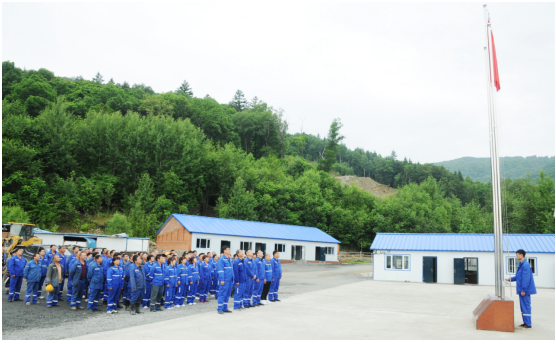 2022年7月1日, 兗州中材和龍分公司在Ⅳ號礦組辦公生活區(qū)舉行“升國旗、唱國歌”儀式,風(fēng)展紅旗如畫,砥礪初心如磐。