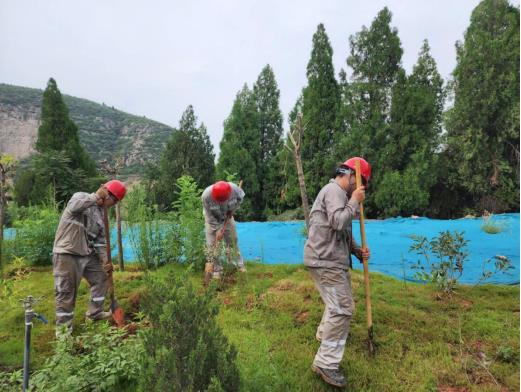 近年來,礦山變綠成為我國礦山發(fā)展的主旋律。河南片區(qū)黨支部以黨建為引領(lǐng),認真踐行“綠水青山就是金山銀山”的生態(tài)理念,堅定不移走“生態(tài)優(yōu)先、綠色低碳”的發(fā)展新路,以黨建統(tǒng)一思想、以黨建激發(fā)活力、以黨建凝聚人心,以紅色黨建助力綠色礦山建設(shè)抓手,將生態(tài)保護放在與生產(chǎn)、安全同等重要的位置。河南片區(qū)黨支部按照綠色發(fā)展理念,著力推動綠色礦山建設(shè),經(jīng)過不懈的努力,僅白坪分公司礦區(qū)已累計種植樹苗幾千余棵。