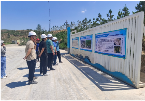 現(xiàn)場觀摩·交流互動 11:00在山西吉港冠宇水泥礦山觀摩。在卸車平臺的旁邊安裝著關于綠色礦山建設的展板,王經(jīng)理對整個礦山從基建期到保產(chǎn)階段,結合歷年不同時期(2010~2023年)的圖片,特別在礦山臨邊開采、控制爆破、安全生產(chǎn)和形象建設方面,進行了全面細致的講解;然后參觀了綠色礦山示范點和運礦道路,草木蔥郁、綠色盎然,藍天白云,構成一幅自然和諧、生態(tài)優(yōu)美的畫卷。充分體現(xiàn)了,新時代我們礦山人踐行“綠水青山就是金山銀山”的理念,更加堅定了“安全第一”、“ 生態(tài)優(yōu)先”的理想信念,牢固樹立和貫徹新發(fā)展理念。將中材西安的黨建品牌“黨旗紅 礦山綠”和兗州中材的黨建品牌“燈塔引領 逐夢礦山”結合起來,深入人心,指導我們今后的實際工作。