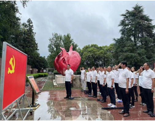 29日,共同前往紅色大別山,在鄂豫皖蘇區(qū)首府革命烈士紀(jì)念館中,以傾盆大雨寄哀思,拾級而上,同志們身著白色上衣整齊列隊(duì)肅立在革命烈士紀(jì)念碑廣場,面朝莊嚴(yán)肅穆的紀(jì)念碑,在宋道明同志的帶領(lǐng)下,全體低頭默哀,沉痛哀悼英勇犧牲的烈士,并共同向烈士敬獻(xiàn)花籃,同志們莊重的舉起右手,面對鮮紅的黨旗,“我志愿加入中國共產(chǎn)黨,擁護(hù)黨的綱領(lǐng)……永不叛黨。”在鏗鏘有力的誓詞中,重溫入黨初心,同志們初心受到洗禮,理想信念更加堅(jiān)定。