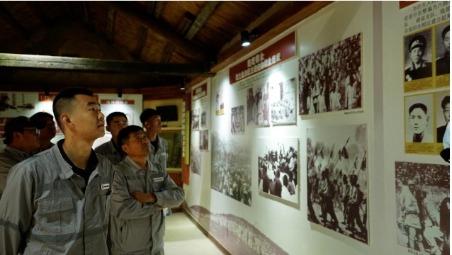 在八路軍115師抱犢崮抗日紀念園,全體員工依次參觀了八路軍第115師紀念館、115師政治部、王麓水紀念館等紅色展館,認真研學(xué)抗日戰(zhàn)爭時期八路軍英勇抗日的光輝事跡。一件件破舊而又珍貴的實物,一幅幅發(fā)黃而又寶貴的照片,一場場硝煙彌漫的激戰(zhàn)場景,仿佛將大家?guī)Щ氐搅四莻€激情燃燒、熱血沸騰的戰(zhàn)爭年代,使大家深刻地感受到八路軍不屈不撓的頑強意志和血戰(zhàn)到底的英雄氣概,思想靈魂受到了深刻的革命洗禮。員工們不時駐足觀看,了解抱犢崮山區(qū)八路軍隊伍與山區(qū)人民軍民魚水情深的感人故事,重溫戰(zhàn)火紛飛的崢嶸歲月,展廳內(nèi)陳列的老照片以及戰(zhàn)場上使用的槍支彈藥無不提醒著我們要牢記革命歷史。