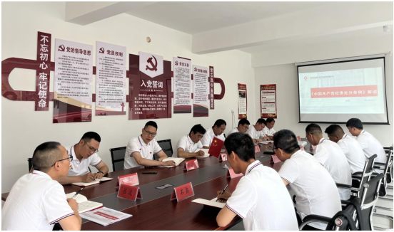 首先,西南片區(qū)黨支部召開支部黨員大會,集中學(xué)習(xí)《中國共產(chǎn)黨紀(jì)律處分條例(2024年)》新修訂版,就修訂的主要內(nèi)容和鮮明特征、對推動全面從嚴(yán)治黨的意義、抓好貫徹落實等方面做出詳細(xì)解讀,并強調(diào)在項目經(jīng)營中,對規(guī)章制度和廉潔紀(jì)律要嚴(yán)格遵守,著重提出對“高壓線”、“紅線”問題不可觸犯。