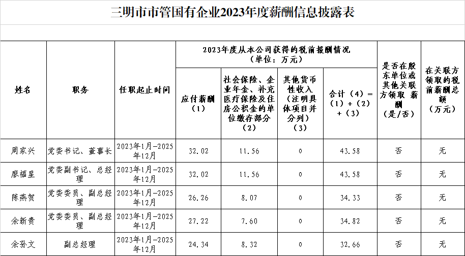根據(jù)市國(guó)資委薪酬披露通知要求,現(xiàn)將我司企業(yè)負(fù)責(zé)人2023年度薪酬在公司官網(wǎng)進(jìn)行公開(kāi)披露,接受社會(huì)公眾監(jiān)督。具體詳見(jiàn)下表: