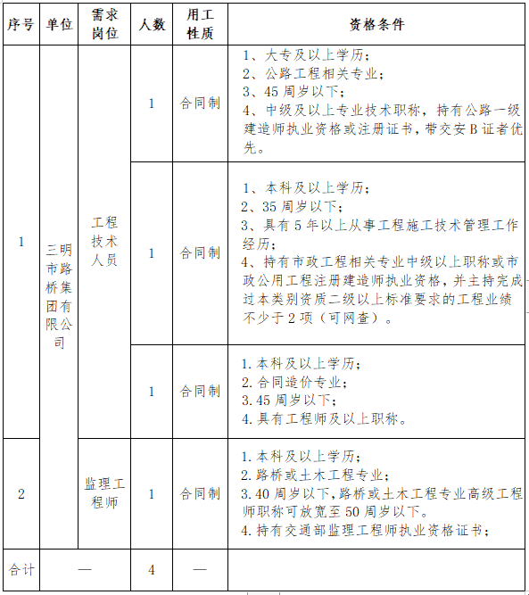(二)報名。采取網(wǎng)絡(luò)報名方式,請應(yīng)聘者下載填寫《三明市路橋集團有限公司公開招聘工作人員報名登記表》(附件),投遞至郵箱smslqjt@163.com(文件命名為“姓名+應(yīng)聘崗位”)。報名截止時間為2022年8月17日。