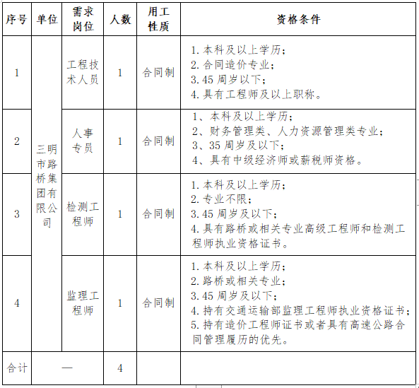 (一)公告。招聘崗位、人數(shù)、任職資格等信息在 “三明市路橋集團(tuán)”官網(wǎng)(m.023724.com)、眾聯(lián)人才招聘網(wǎng)(www.zlrczp.com)、“三明海峽人才網(wǎng)”向社會統(tǒng)一公告。