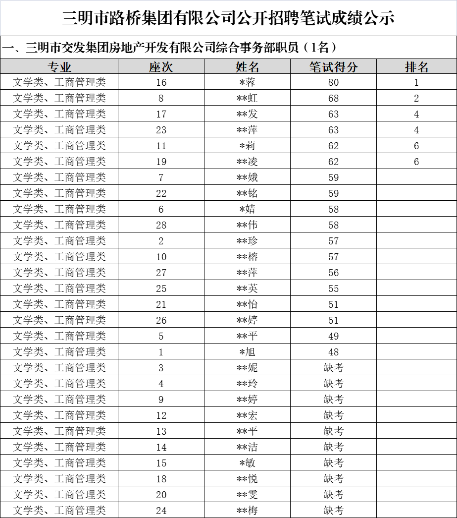 市路橋集團(tuán)公開(kāi)招聘筆試環(huán)節(jié)已于2022年12月1日完成,現(xiàn)將筆試成績(jī)予以公示:
