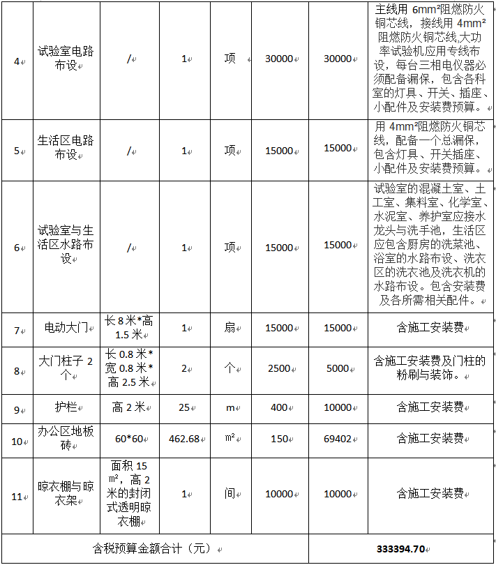 采購最高控制費用為333394.7元,采購項目及數量規(guī)格要求等如下表: